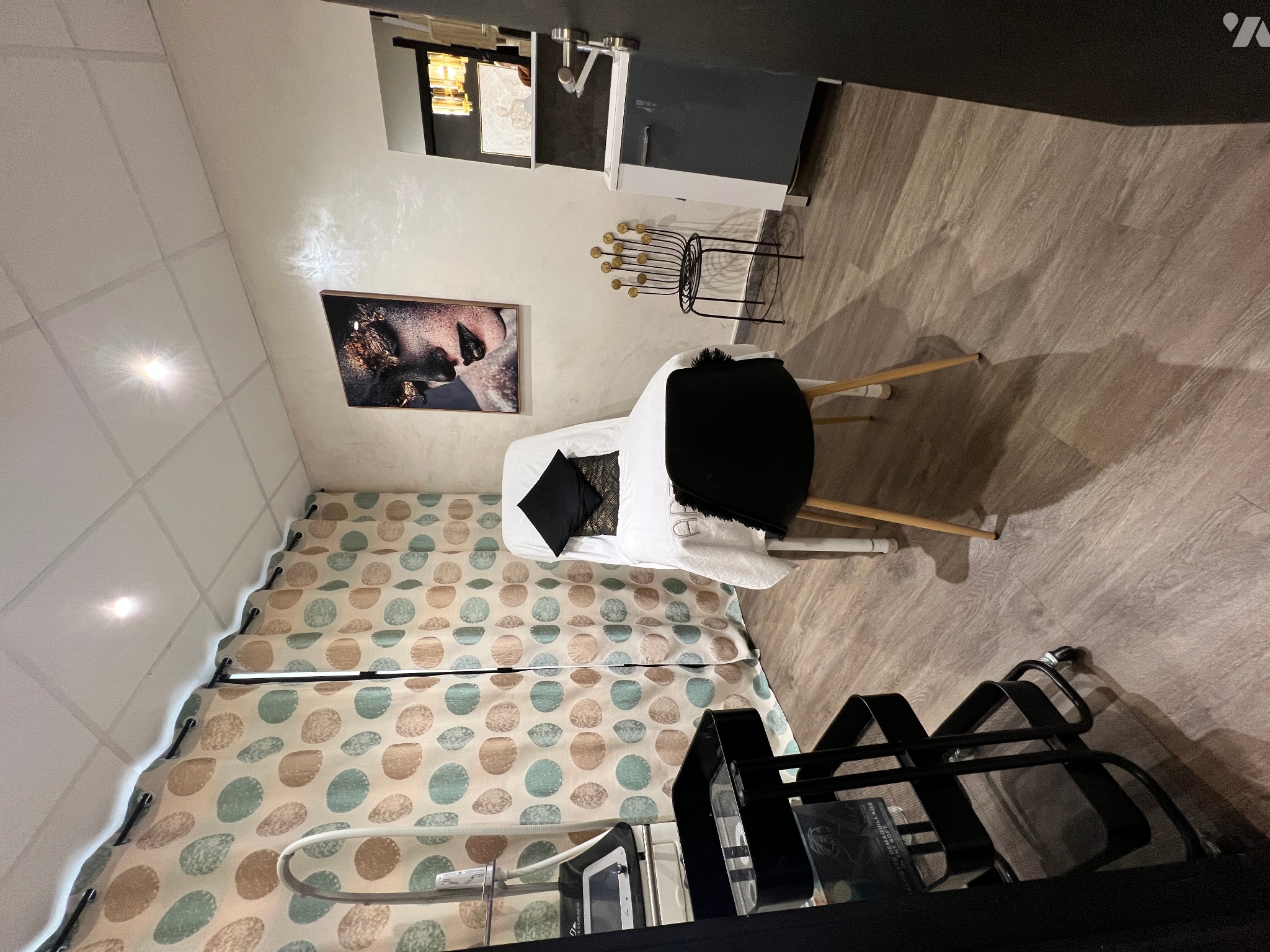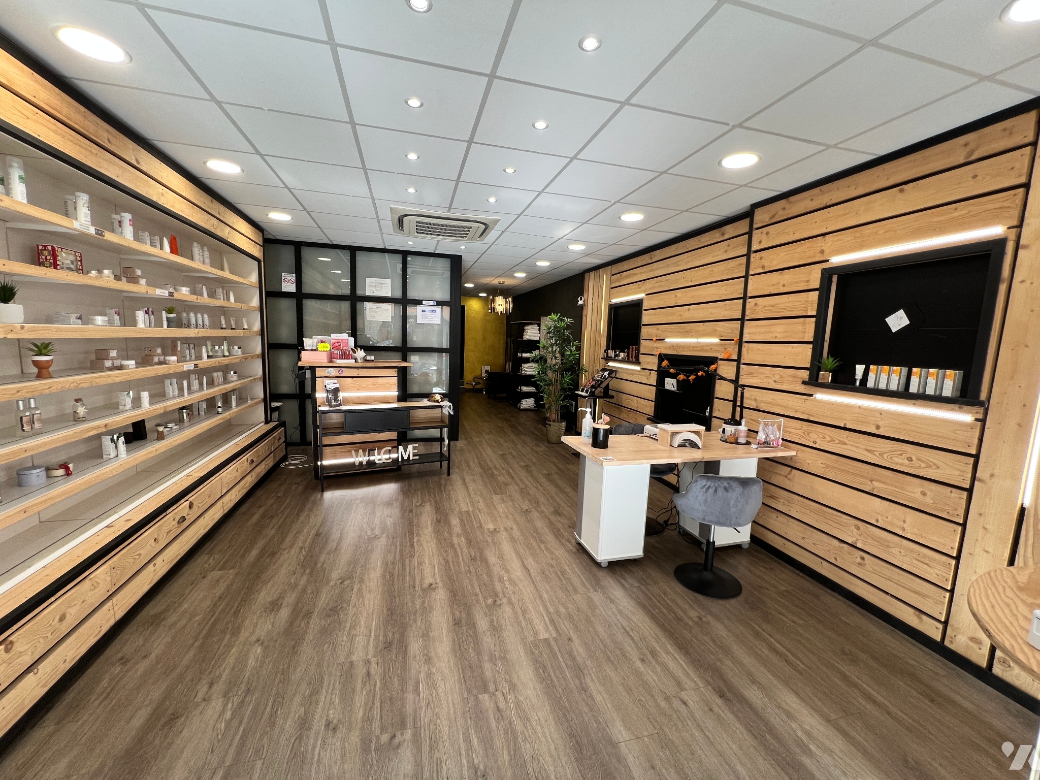 Un local commercial avec entrée et vitrine sous les Grandes Arcades, bureau, réserves, W-C-, jardinet, grilles de protection à commande électrique, rideau métallique, climatisation